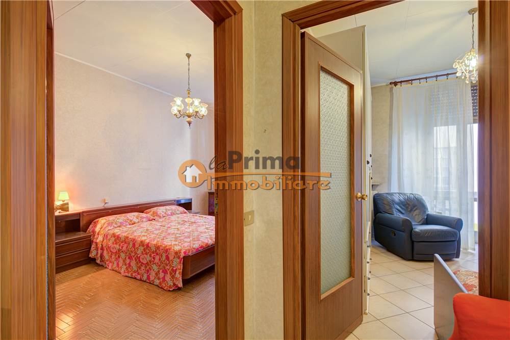 ingresso, soggiorno con cucina a vista, camera matrimoniale con uscita sul balcone, camera singola con uscita sul secondo balcone, disimpegno e bagno.